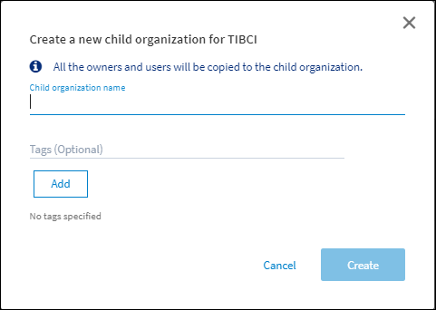 You can assign tags to a child organization when you create it. These tags can be added even after you create a child organization. They can be edited or deleted. For more information about tags, see Child Organization Tags.