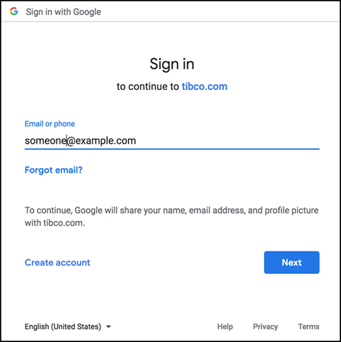 You can use a Google account to sign in to TIBCO Cloud if your organization uses Google as the authentication provider.