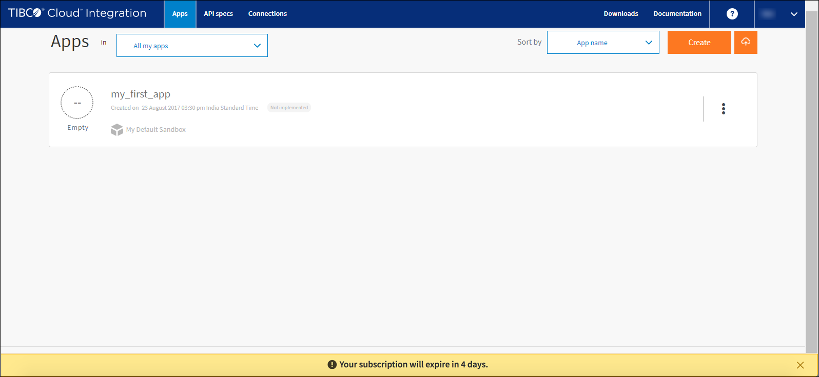 You can subscribe to the numerous subscriptions available on TIBCO Cloud. All the tasks pertaining to your subscriptions can be performed on the Subscriptions tab. For more information about subscription expiry and upgrade, see Subscription Expiry and Upgrade.